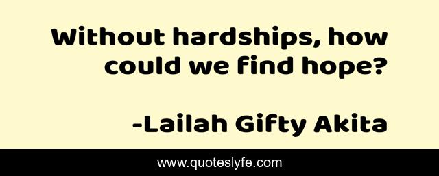 "Lailah Gifty Akita Quotes." Quoteslyfe.com, 2025. Fri. 05 Dec. 2025. <https://www.quoteslyfe.com/quote/Without-hardships-how-could-we-find-hope-20288>.