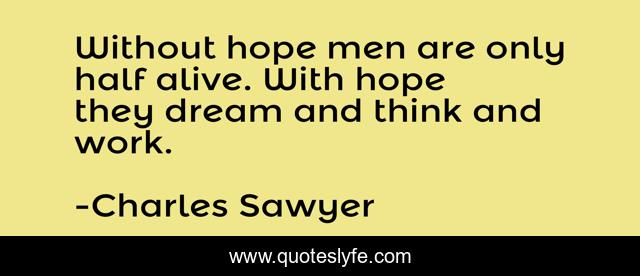 This page presents the quote "Without hope men are only half alive. With hope they dream and think and work.". Author of this quote is Charles Sawyer. .