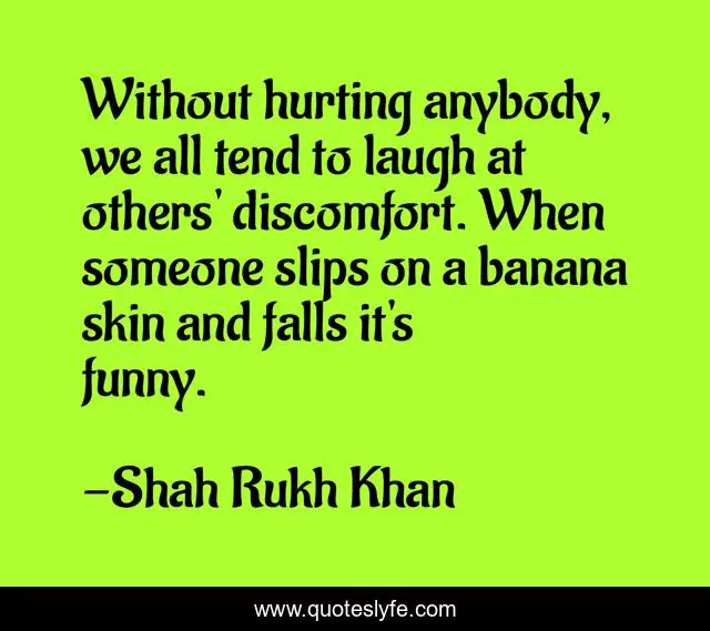 This page presents the quote "Without hurting anybody, we all tend to laugh at others' discomfort. When someone slips on a banana skin and falls it's funny.". Author of this quote is Shah Rukh Khan. This quote is about banana, laugh, skin,.