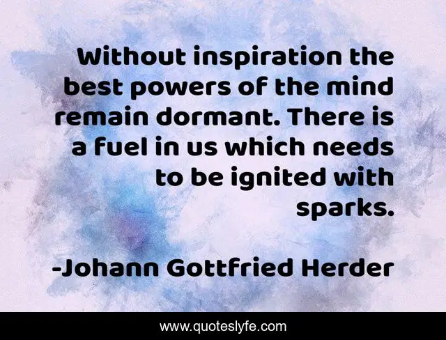 This page presents the quote "Without inspiration the best powers of the mind remain dormant. There is a fuel in us which needs to be ignited with sparks.". Author of this quote is Johann Gottfried Herder. This quote is about positive, confidence, motivational, optimistic,.