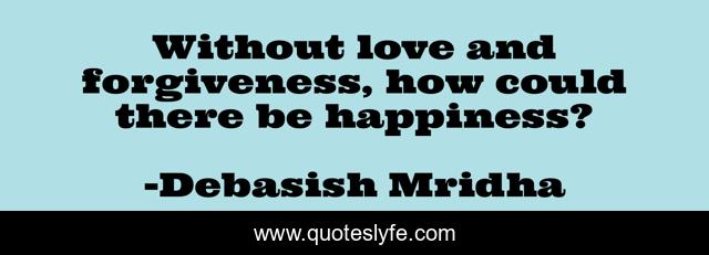 This page presents the quote "Without love and forgiveness, how could there be happiness?". Author of this quote is Debasish Mridha. This quote is about love, life-wisdom, philosophy, debasish-mridha, how-to-be-happy, quotes, happiness, inspirational, enthusiasm,.