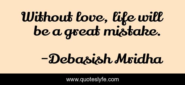 This page presents the quote "Without love, life will be a great mistake.". Author of this quote is Debasish Mridha. This quote is about life, love, knowledge, inspirational, intelligence, philosophy, wisdom, quotes, affection,.
