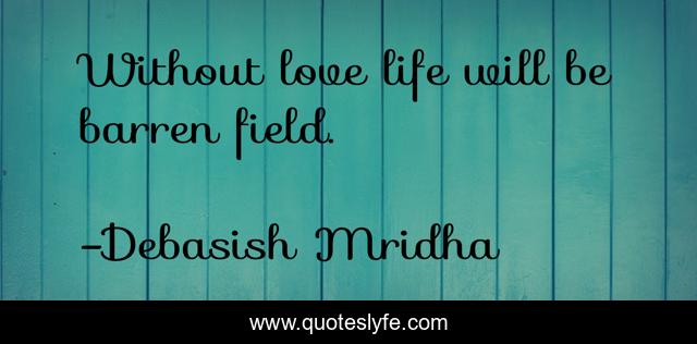 This page presents the quote "Without love life will be barren field.". Author of this quote is Debasish Mridha. This quote is about life, love, knowledge, inspirational, intelligence, philosophy, wisdom, quotes, affection,.
