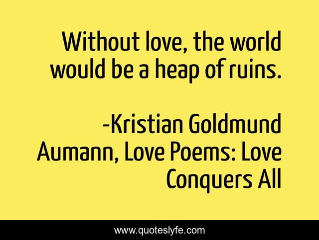 This page presents the quote "Without love, the world would be a heap of ruins.". Author of this quote is Kristian Goldmund Aumann, Love Poems: Love Conquers All. This quote is about love, affection,.
