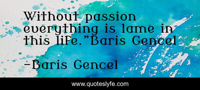 This page presents the quote "Without passion everything is lame in this life.”Baris Gencel". Author of this quote is Baris Gencel. This quote is about life, passion,.