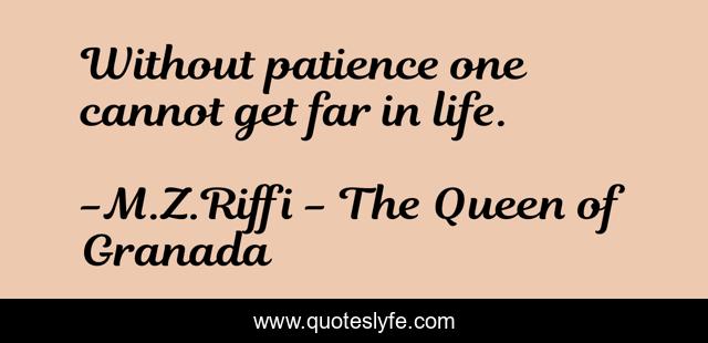 This page presents the quote "Without patience one cannot get far in life.". Author of this quote is M.Z.Riffi - The Queen of Granada. .