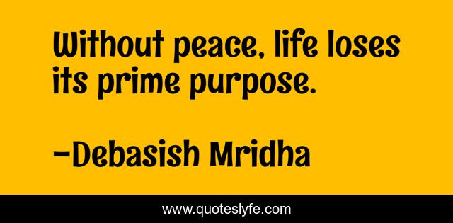This page presents the quote "Without peace, life loses its prime purpose.". Author of this quote is Debasish Mridha. This quote is about miraboli, peace, oscar-wilde, philosophy, debasish-mridha, tagore, quotes, buddha, debasish-mridha-md,.