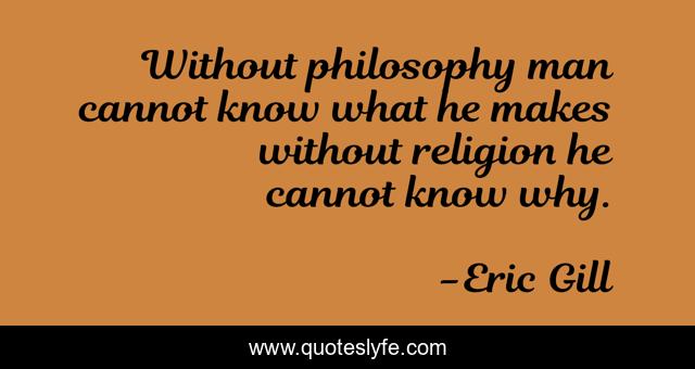 This page presents the quote "Without philosophy man cannot know what he makes without religion he cannot know why.". Author of this quote is Eric Gill. This quote is about philosophy, man,.