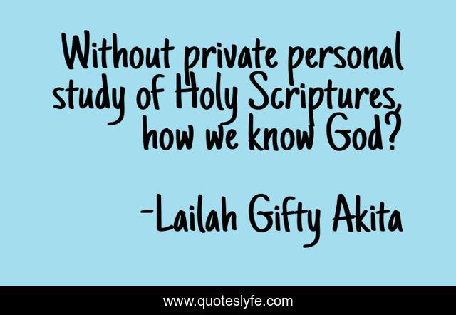 This page presents the quote "Without private personal study of Holy Scriptures, how we know God?". Author of this quote is Lailah Gifty Akita. This quote is about holy-scripture, christian, bible-study, self-help, god, private-study, personal-study,.
