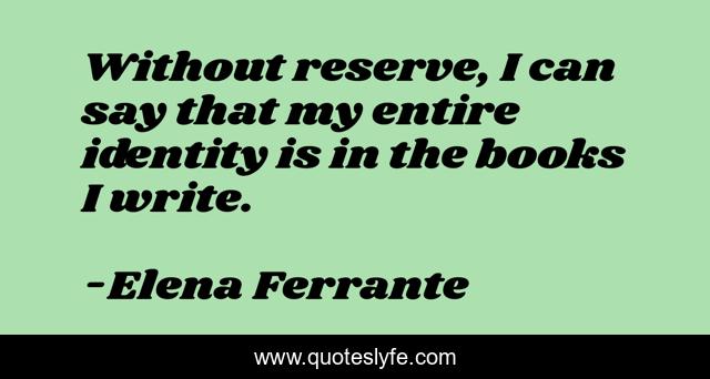 This page presents the quote "Without reserve, I can say that my entire identity is in the books I write.". Author of this quote is Elena Ferrante. This quote is about literature, privacy,.