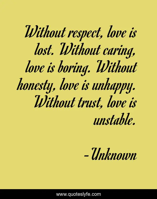 Without respect, love is lost. Without caring, love is boring. Without honesty, love is unhappy. Without trust, love is unstable.