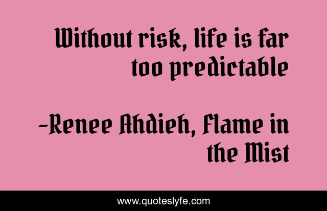 "Renee Ahdieh, Flame in the Mist Quotes." Quoteslyfe.com, 2025. Fri. 05 Dec. 2025. <https://www.quoteslyfe.com/quote/Without-risk-life-is-far-too-predictable-240255>.