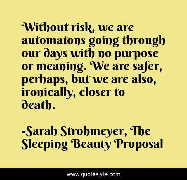 "Sarah Strohmeyer, The Sleeping Beauty Proposal Quotes." Quoteslyfe.com, 2025. Fri. 05 Dec. 2025. <https://www.quoteslyfe.com/quote/Without-risk-we-are-automatons-going-through-116612>.
