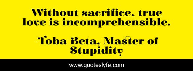 This page presents the quote "Without sacrifice, true love is incomprehensible.". Author of this quote is Toba Beta, Master of Stupidity. This quote is about true-love, sacrifice, incomprehensible,.