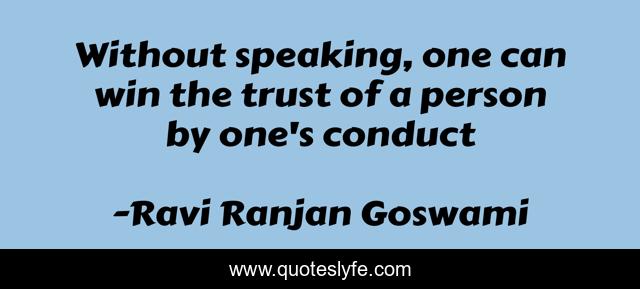 This page presents the quote "Without speaking, one can win the trust of a person by one's conduct". Author of this quote is Ravi Ranjan Goswami. This quote is about trust, conduct,.