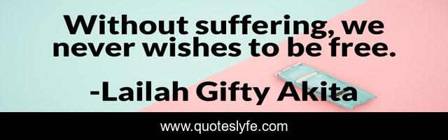 This page presents the quote "Without suffering, we never wishes to be free.". Author of this quote is Lailah Gifty Akita. This quote is about harsh-conditions, saved-souls, freedom, free, suffering, wishes, hard-truth,.