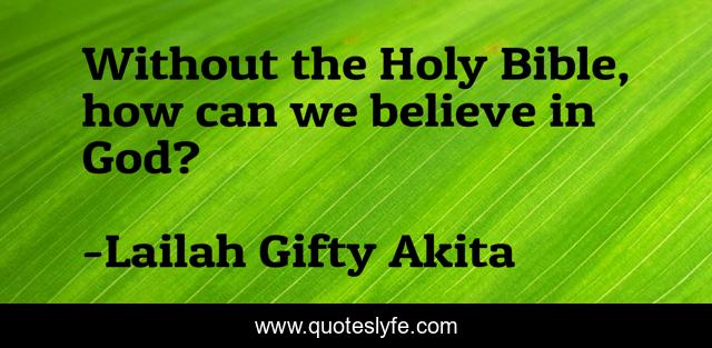 This page presents the quote "Without the Holy Bible, how can we believe in God?". Author of this quote is Lailah Gifty Akita. This quote is about faith, believe, christian, god, holy-bible,.