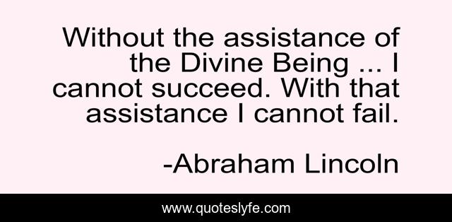 This page presents the quote "Without the assistance of the Divine Being ... I cannot succeed. With that assistance I cannot fail.". Author of this quote is Abraham Lincoln. .
