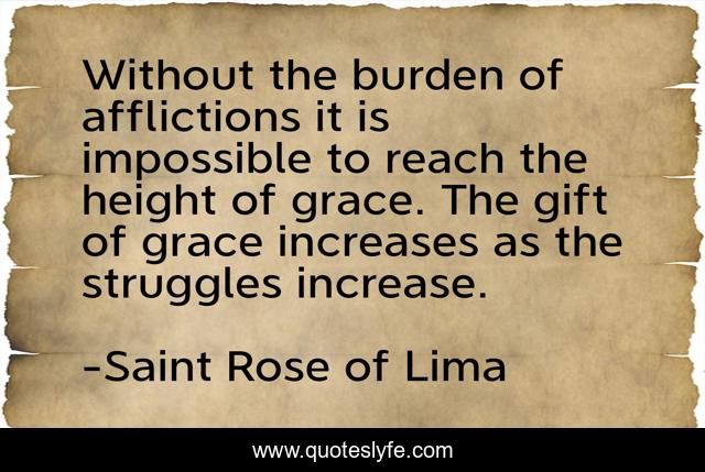 This page presents the quote "Without the burden of afflictions it is impossible to reach the height of grace. The gift of grace increases as the struggles increase.". Author of this quote is Saint Rose of Lima. .