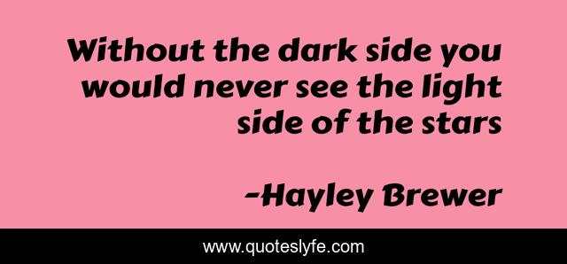 This page presents the quote "Without the dark side you would never see the light side of the stars". Author of this quote is Hayley Brewer. This quote is about deep-thoughts, life-lessons,.