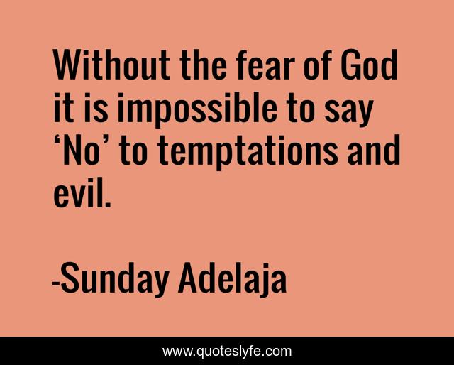 This page presents the quote "Without the fear of God it is impossible to say ‘No’ to temptations and evil.". Author of this quote is Sunday Adelaja. This quote is about fear, fear-of-god, temptations,.