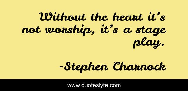 This page presents the quote "Without the heart it’s not worship, it’s a stage play.". Author of this quote is Stephen Charnock. .