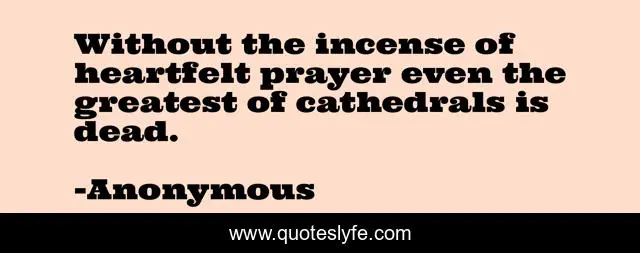 This page presents the quote "Without the incense of heartfelt prayer even the greatest of cathedrals is dead.". Author of this quote is Anonymous. .