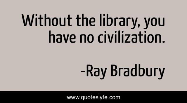 "Ray Bradbury Quotes." Quoteslyfe.com, 2025. Sun. 07 Dec. 2025. <https://www.quoteslyfe.com/quote/Without-the-library-you-have-no-civilization-239679>.