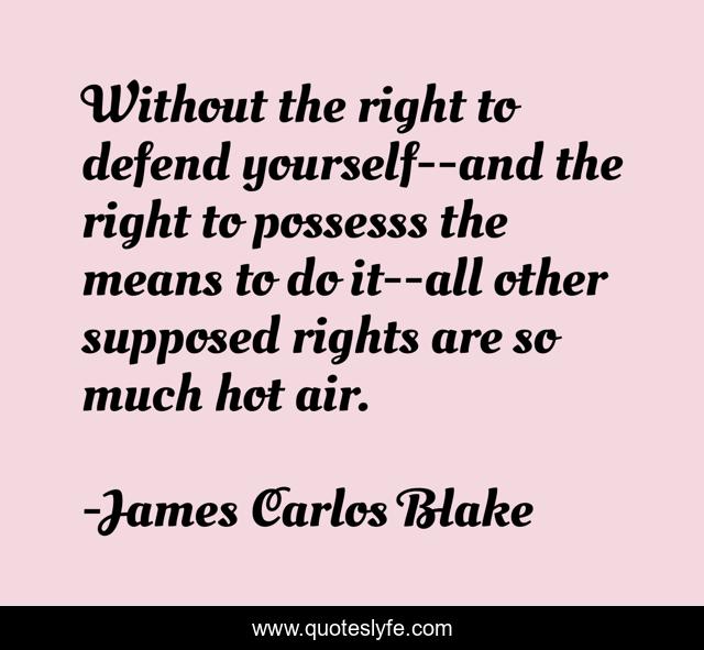 "James Carlos Blake Quotes." Quoteslyfe.com, 2025. Fri. 05 Dec. 2025. <https://www.quoteslyfe.com/quote/Without-the-right-to-defend-yourself-and-280496>.