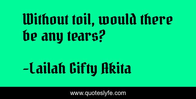 This page presents the quote "Without toil, would there be any tears?". Author of this quote is Lailah Gifty Akita. This quote is about toil, tears, wise-words, inspiration,.