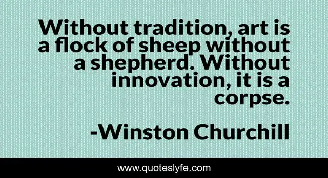 This page presents the quote "Without tradition, art is a flock of sheep without a shepherd. Without innovation, it is a corpse.". Author of this quote is Winston Churchill. This quote is about sheep, tradition, innovation,.