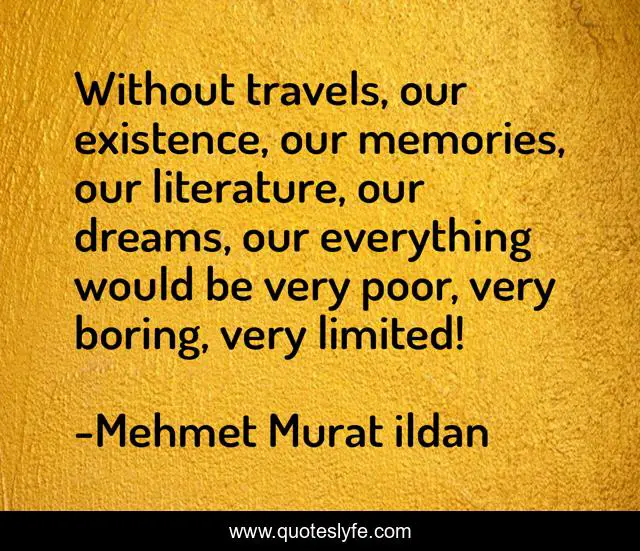 "Mehmet Murat ildan Quotes." Quoteslyfe.com, 2025. Mon. 08 Dec. 2025. <https://www.quoteslyfe.com/quote/Without-travels-our-existence-our-memories-our-53701>.