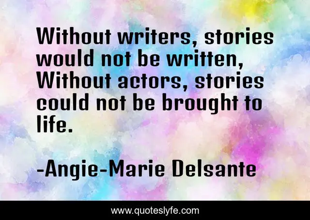 This page presents the quote "Without writers, stories would not be written, Without actors, stories could not be brought to life.". Author of this quote is Angie-Marie Delsante. This quote is about theatre, filmmaking, creativity, acting, writing, imagination, scriptwriters, writers, actors,.