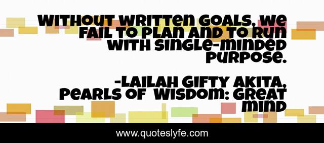 "Lailah Gifty Akita, Pearls of Wisdom: Great mind Quotes." Quoteslyfe.com, 2025. Fri. 05 Dec. 2025. <https://www.quoteslyfe.com/quote/Without-written-goals-we-fail-to-plan-34431>.