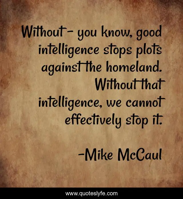 "Mike McCaul Quotes." Quoteslyfe.com, 2025. Sun. 07 Dec. 2025. <https://www.quoteslyfe.com/quote/Without-you-know-good-intelligence-stops-plots-298549>.