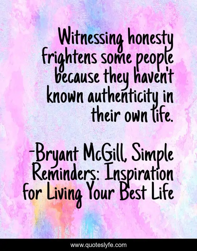 "Bryant McGill, Simple Reminders: Inspiration for Living Your Best Life Quotes." Quoteslyfe.com, 2025. Fri. 05 Dec. 2025. <https://www.quoteslyfe.com/quote/Witnessing-honesty-frightens-some-people-because-they-166227>.