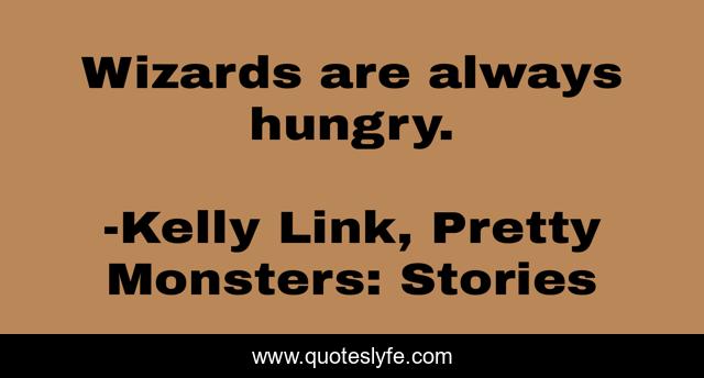 "Kelly Link, Pretty Monsters: Stories Quotes." Quoteslyfe.com, 2025. Mon. 08 Dec. 2025. <https://www.quoteslyfe.com/quote/Wizards-are-always-hungry-28775>.