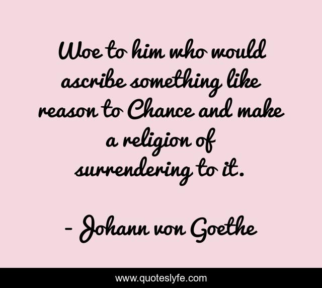 This page presents the quote "Woe to him who would ascribe something like reason to Chance and make a religion of surrendering to it.". Author of this quote is Johann von Goethe. .