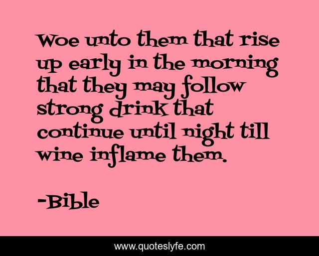 This page presents the quote "Woe unto them that rise up early in the morning that they may follow strong drink that continue until night till wine inflame them.". Author of this quote is Bible. .