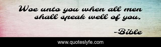 This page presents the quote "Woe unto you when all men shall speak well of you.". Author of this quote is Bible. This quote is about calumny, insults,.