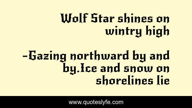 "Gazing northward by and by.Ice and snow on shorelines lie Quotes." Quoteslyfe.com, 2025. Fri. 05 Dec. 2025. <https://www.quoteslyfe.com/quote/Wolf-Star-shines-on-wintry-high-195394>.