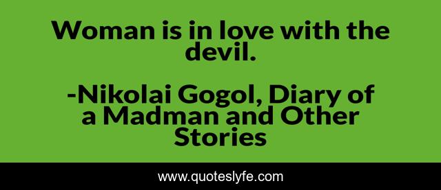 This page presents the quote "Woman is in love with the devil.". Author of this quote is Nikolai Gogol, Diary of a Madman and Other Stories. This quote is about devil, woman, in-love,.