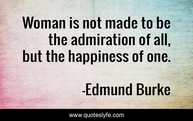 This page presents the quote "Woman is not made to be the admiration of all, but the happiness of one.". Author of this quote is Edmund Burke. This quote is about admiration, woman, happiness,.
