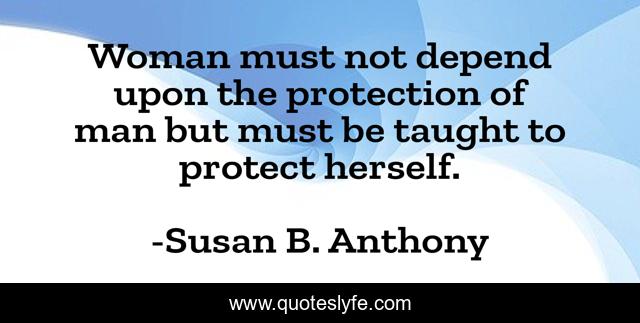 This page presents the quote "Woman must not depend upon the protection of man but must be taught to protect herself.". Author of this quote is Susan B. Anthony. This quote is about self, reliance,.