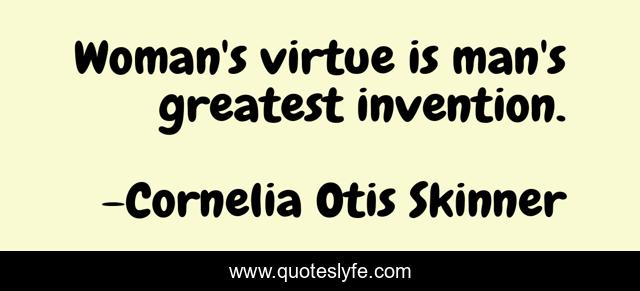This page presents the quote "Woman's virtue is man's greatest invention.". Author of this quote is Cornelia Otis Skinner. This quote is about virtue, feminism, women,.