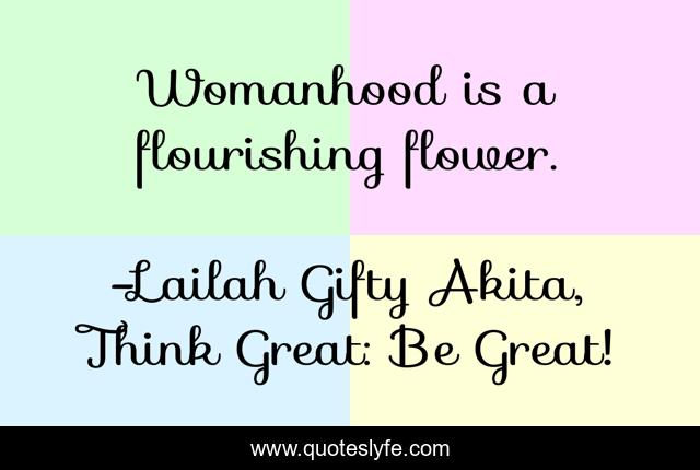 "Lailah Gifty Akita, Think Great: Be Great! Quotes." Quoteslyfe.com, 2025. Tue. 09 Dec. 2025. <https://www.quoteslyfe.com/quote/Womanhood-is-a-flourishing-flower-124115>.