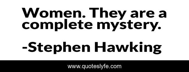 "Stephen Hawking Quotes." Quoteslyfe.com, 2025. Sat. 06 Dec. 2025. <https://www.quoteslyfe.com/quote/Women-They-are-a-complete-mystery-302295>.