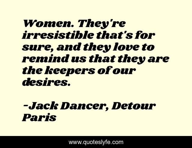 "Jack Dancer, Detour Paris Quotes." Quoteslyfe.com, 2025. Sat. 06 Dec. 2025. <https://www.quoteslyfe.com/quote/Women-They-re-irresistible-that-s-for-238957>.