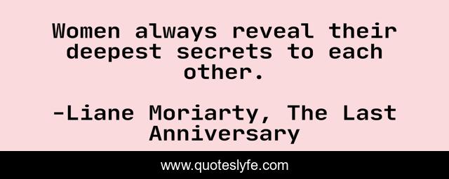 This page presents the quote "Women always reveal their deepest secrets to each other.". Author of this quote is Liane Moriarty, The Last Anniversary. This quote is about mystery, island, life, secret, family,.