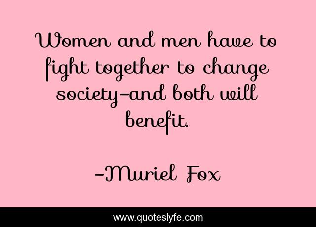 This page presents the quote "Women and men have to fight together to change society-and both will benefit.". Author of this quote is Muriel Fox. .
